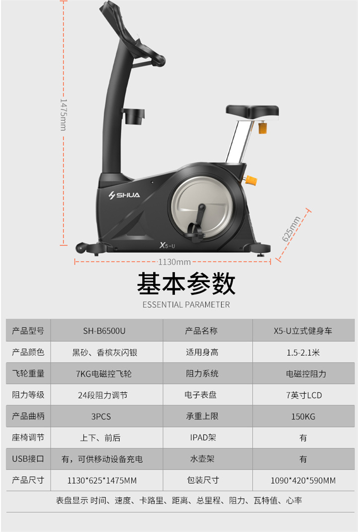 舒華立式商用健身車SH-B9100U(V10)觸屏版擁有超大顯示和操作屏幕, 可以任意設置阻力、時間和距離等參數,還可以即時顯示心跳和轉速等數據,同時,SH-B9100U提供多項科學運動處方,更輕松掌握運動節奏。
