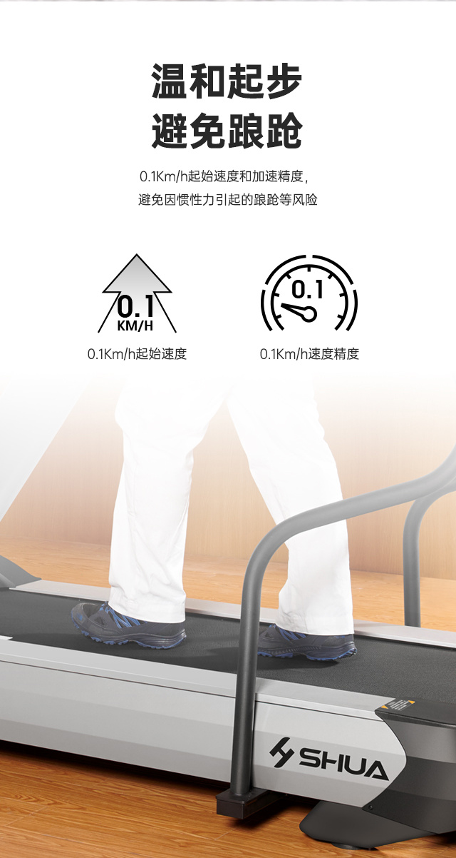 舒華V9尊享版跑步機(jī)SH-T899設(shè)有輔助上下機(jī)踏板的驅(qū)動(dòng)踏板,控制速度在-5至10km/h內(nèi)可調(diào),坡度也可在-3至15%內(nèi)可調(diào),跑臺(tái)尺寸是580×1570mm,持續(xù)馬力是AC 3.0HP。